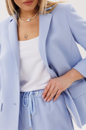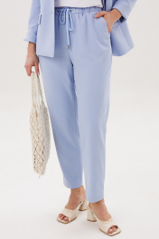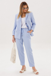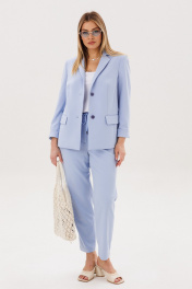 Стильный образ - это главный принцип современной моды. Уверенно и неординарно - так мы должны себя чувствовать в хорошей одежде, а лучшим помощником для создания лука станет брючный костюм. Комплект 2-х предметный. Силуэт свободный, слегка упрямлённый, покрой-втачной, воротник классический английский, линия борта фигурная, застёжка на две петли и пуговицы. Полочка с отрезным бочком, нагрудной вытачкой и прорезным карманом с клапаном. Спинка со средним швом и талиевой вытачкой. Рукав двухшовный с отлетной шлицей и отделочными пуговицами. Брюки свободные, на эластичном поясе с люверсами и отделочным шнуром. Передние половинки с боковыми накладными карманами. Длина пиджака около 67 см, длина рукава около 60 см. Длина брюк около 98 см