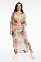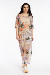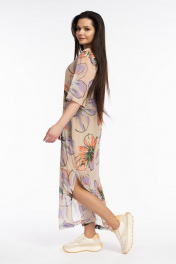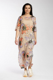 Легкое шифонове платье лаконичного кроя с ярким принтом. Прямой силуэт. Круглый вырез горловины. Короткий рукав до линии сгиба локтя. Подкладка выполнена в форме комбинации. Длина изделия: 132,5, длина рукава: 35см