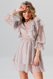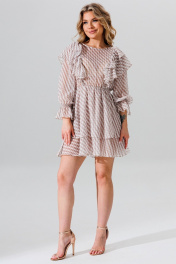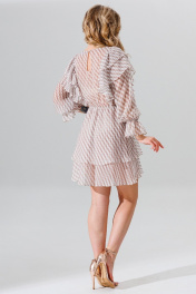 Легкое платье из шифона с воланами и резинкой Faufilure C1653 бежевый