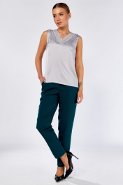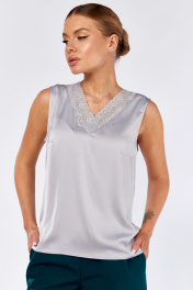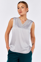 Атласная нарядная блузка свободного силуэта, с нагрудными вытачками. Горловина декорирована вставкой из мягкого кружева.