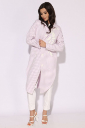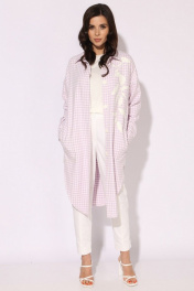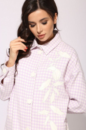 Комплектация: комплект- рубашка и брюки Тип ткани: костюмная Силуэт: свободный Вырез горловины: воротник стояче-отложной Длина рубашки по спинке: 105см Длина рукава: от горловины- 78 см, рукав спущенный, снизу на манжете. Дополнительное описание: по переду рубашки-планка с застежкой на петли и пуговицы и декоративная вышивка. В боковых швах- вставки из эко-кожи и карманы. Брюки классические, с карманами . Швы отстрочены двойной строчкой. Пояс частично на резинке. Силуэт: прямой