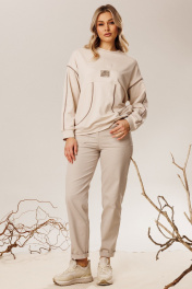 Джемпер из качественной трикотажной ткани, с декоративными отделочными кантами, нашивкой и фигурным подрезом по полочке. Рукав спущенный, на манжете.