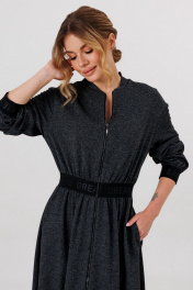 Платье из качественного фактурного трикотажного полотна в рубчик , на застежке-молнии, с карманами в боковых швах и эластичным поясом на талии.