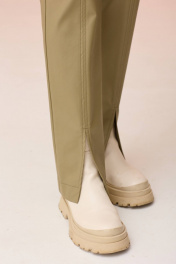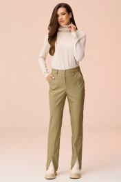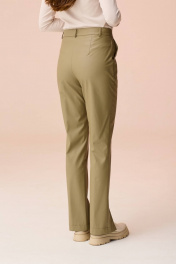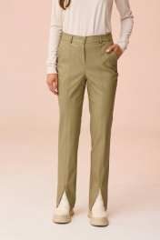 Брюки прямого силуэта из экокожи с разрезами по низу Faufilure C929 зеленый