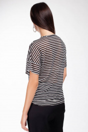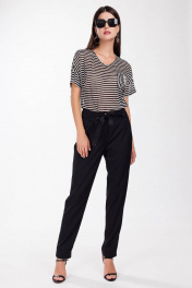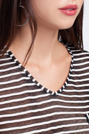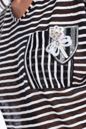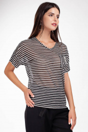Джемпер женский прямого силуэта. С V-образным вырезом горловины. Со спущенной линией плеча. На переде накладной карман слева. По карману настрочена декоративная нашивка. Рукава – втачные, короткие.