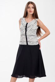 Полуприлегающее комбинированное платье с расширенной юбкой. Длина ниже линии колена.Отрезное выше линии бедер. V-образный вырез горловины. Низ платья на подкладке.