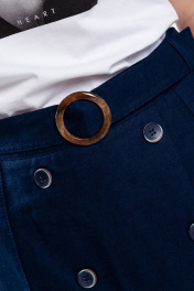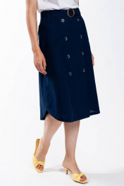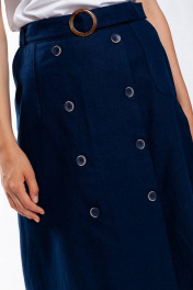 Юбка А-силуэта,двухбортная с декоративными пуговицами, длина ниже уровня колена. Модель выглядит изысканно, элегантно и женственно как на стройных девушках с идеальными параметрами, так и на женщинах с пышными формами. Накладные карманы. Застежка на потайную молнию. Съёмный пояс из основной ткани с декоративной пряжкой придает законченность образу.