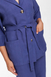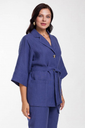 Жакет из костюмной льняной ткани, прямого силуэта со шлёвками в боковых швах и съёмным завязывающимся поясом. Рукав рубашечный, со спущенной линией проймы и притачной двойной манжетой. Застежка центральная на три петли и пуговицы. Воротник пиджачного типа. По переду накладные карманы. Обращаем Ваше внимание, что цвет на экране может отличаться от реального.