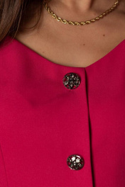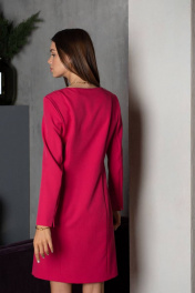 Эффектное платье в цвете фуксии полуприлегающего силуэта. Длина выше линии колена.По переду и спинке платья расположены рельефы. Перед изделия декорирован пуговицами. Застежка - молния в боковом шве. Рукав втачной,двухшовный, длинный. В локтевом шве по низу - разрезы длинной 4 см. Платье на подкладке.Параметры манекеншиц: Рост - 174см. Обхват груди - 85см. Обхват талии - 59см. Обхват бедер - 86см. Измерения изделия: Рост - 170см. Обхват груди - 88см. Обхват талии - 67,6см. Обхват бедер - 96см. Длина изделия - 91см.
