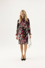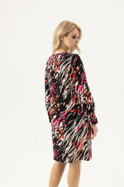 Женское платье прямого силуэта с длинным рукавом длиной до линии колен.Застегивается модель на петлю и пуговицу сзади.Платье имеет длинные рукава расширенные книзу на манжете 3 см и застегиваются на пуговицу.Интересный принт платья и рукава фонарики выделит Вас из толпы, будучи неординарным, смелым и притягательным элементом Вашего лука.Такое женское платье покорит своей универсальностью, ведь оно идеально подойдет в качестве коктельного или повседневного наряда.