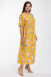 Платье свободного силуэта на кулиске выше талии , длиной миди. Рукав втачной, расширенный книзу. Платье без подкладки и застежки. Яркий , запоминающийся образ , подойдет и для особых случаев.