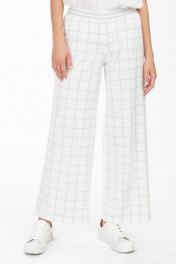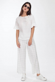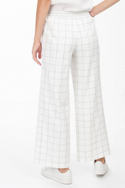 Брюки женские, прямые, укороченные. Без застежки. Верхний срез обработан эластичной тесьмой. Задние половины с двумя вытачками.