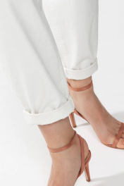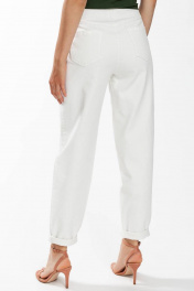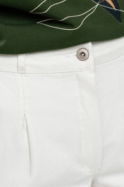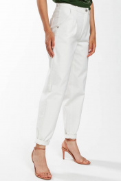 Базовые зауженный книзу брюки- "бананы" из хлопковой ткани на подкройном поясе. Лаконичные брюки с наклонными боковыми карманами. Посадка на талии и застежка на молнию и пуговицу. Светлые брюки отлично впишутся в Ваш гардероб и позволят собрать множество интересных луков.