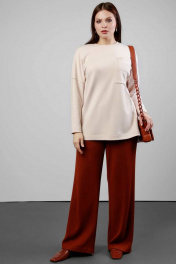 Трендовые брюки из плотного трикотажного полотна прямого силуэта, длинные. Дополнительный комфорт благодаря притачному поясу с резинкой. По переду изделия отрезные бочки, имитирующие карманы. Стильная модель брюк для создания эффектных и привлекательных образов.