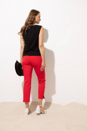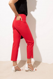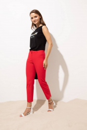 Стильные брюки зауженные книзу длиной 7/8.Брюки со шлевками для продевания пояса застегиваются на тесьму-молнию, одну петлю и пуговицу. Сзади имеется кокетка и накладные карманы с двойной фигурной отстрочкой.Брюки хорошо садятся по фигуре, приятные к телу и на ощупь, в них не жарко, не требуют специального ухода. Данная модель может стать базой делового гардероба, а также повседневным вариантом на работу в офис летом ,весной и даже осенью.