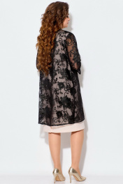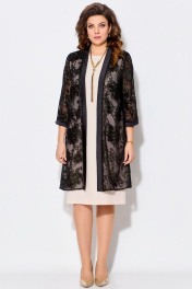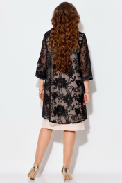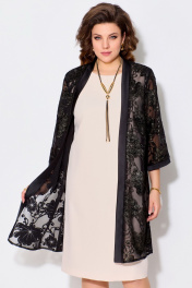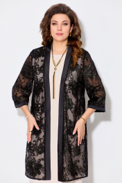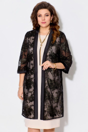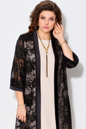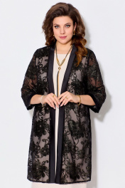 "Кардиган нарядный ""Гарца"" прямого силуэта с атласной отделкой на планке. Планка по борту и низу рукава из атласа. Низ обработан швом в подгибку, выточка по груди. Внимание! Украшение в комплект не входит. "