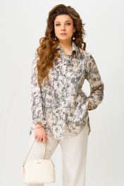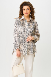 Блуза прямого силуэта с кокеткой и застежкой пуговицами Fita 20535 беж+черный