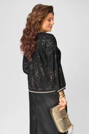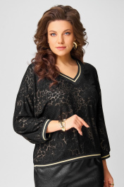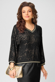 Нарядный джемпер "Ираида" свободного покроя выполнен из мягкого трикотажного полотна с декоративной сеткой, создающей эффект многослойности и воздушности. Спущенный рукав придаёт образу расслабленную элегантность, а V-образная горловина, обработанная довязом, подчёркивает линию шеи. Низ изделия и рукавов также оформлены довязом, что придаёт завершённость и аккуратность силуэту. Идеальный выбор для праздничного выхода, вечернего образа или стильного повседневного наряда.