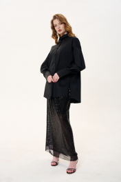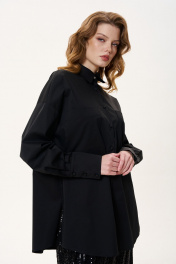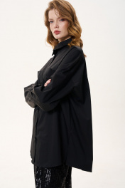 Демисезонная оверсайз черная рубашка из текстиля FLAIM 1030 черный
