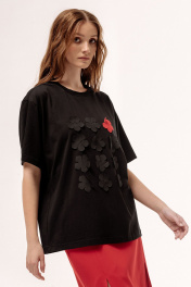 Черная майка с цветами и укороченным рукавом FLAIM 1055 черный
