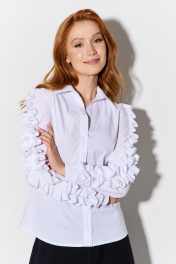 Приталенная классическая рубашка из текстиля с рюшами и манжетами FLAIM 1092.01 белый