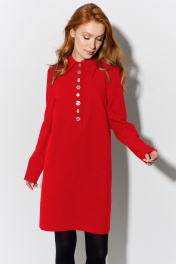 Платье прямого силуэта. Характеристики: выполнено из плательной ткани в красном цвете, воротник рубашечного типа с планкой на петли и пуговицы, рукав двухшовный. Длина платья 91 см, длина рукава 62 см.