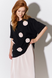 Бежевый майка с юбкой и декоративными цветами FLAIM 1104.01 черный-бежевый