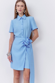 Блузка классического кроя, выполнена из блузочной ткани в голубом цвете, центральная застежка на петли и пуговицы, по спинке отрезная кокетка.