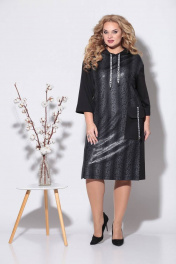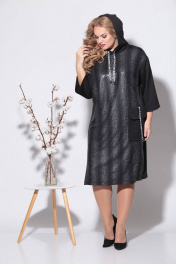Платье трикотаж экокожа прямое с капюшоном Fortuna ШЖ 697