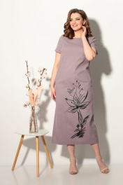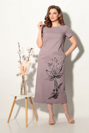 Платье летнее из стрейчевого льна с принтом и карманами Fortuna ШЖ 699 серо-розовый