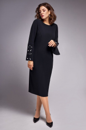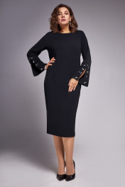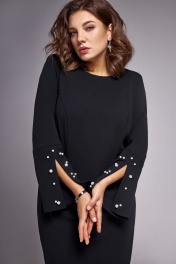 Нарядно-повседневное платье полуприлегающего силуэта со втачными рукавами, по спинке застежка-молния и разрез, по разрезам рукавов декоративный жемчуг-блочка.