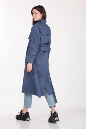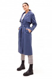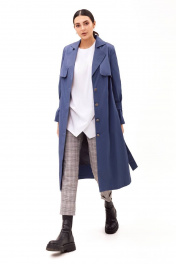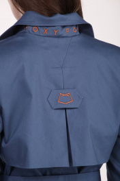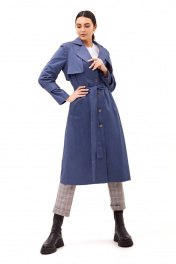 Тренч свободного силуэта на подкладке со втачными рукавами. Центральная застежка на петли и пуговицы, по переду прорезные карманы с листочками и отлетные кокетки. Воротник пиджачного типа, на рукавах паты. По спинке отлетная кокетка с декоративной деталью, на которой выполнена фирменная вышивка. А также сзади на стойке воротника вышито название бренда. В боковых швах шлевки для съемного пояса. Подкладка в тренче отлетная, закрепленная по низу.