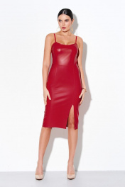 Платье прилегающего силуэта из ЭКО - кожи на мягкой замшевой основе без подкладки. Платье на регулируемых бретелях, отрезное по линии талии, в боковом шве потайная молния, по переду разрез.