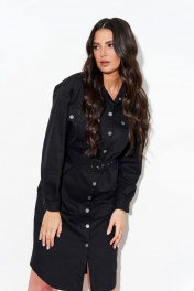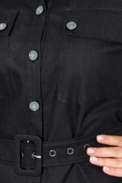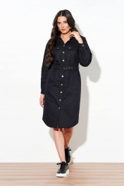 Джинсовое платье-рубашка свободного силуэта с функциональными накладными карманами по переду и в боковых швах, рукава со спущенной линией плеча с манжетами, воротник рубашечный, застежка-планка на петли и пуговицы. В комплекте съемный пояс из основной ткани. Изделие можно носить как платье, так и как легкий тренч, плащ. Материал при правильном уходе не теряет своих свойств. Инструкция по уходу: - джинсовые вещи стирают отдельно от других вещей (закрывают всю фурнитуру, пуговицы, кнопки); - выворачивают на изнанку; - джинсовые ткани не рекомендуют сильно отжимать, лучше пользоваться бережной стиркой.
