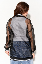 Стильный удлиненный бомбер свободного силуэта выполнен из органзы. Рукава со спущенной линией плеча; по переду функциональные прорезные карманы; застежка на молнию. Бомбер дополнен трикотажными довязами. Изделие полностью соответсвует заявленному размеру. Пожалуйста, пользуйтесть таблицей замеров готового изделия. Уход за изделиями из органзы: - стирать рекомендуется только вручную в теплой воде; - не рекомендуется использовать отжим; - сушить на горизонтальной поверхности; - хранить на плечиках.