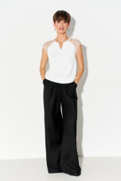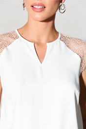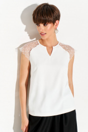 Блуза из легкой ткани с рукавами из кружева и разрезом FOXY FOX 1685 молочный