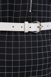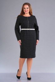 Нарядно-повседневное платье из плотного трикотажа прилегающего силуэта со втачными рукавами, по переду застежка-молния, по спинке шлица. В комлекте съемный пояс.