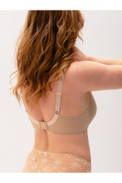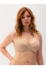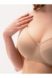 Классический бюстгальтер из сетки. Чашка полупоролон на каркасах. Крой бюстгальтера выполнен с учетом особенностей груди большого размера. Бюстгальтер изготовлен из функционального прозрачного сетчатого полотна. Чашка дублированная тонким поролоном, с Т-образным швом формирует и округляет грудь. U-образное положение бретелей с регулировкой по длине. Застёжка 2*3 крючка.
