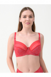 Бюстгальтер из микрофибры и кружев с декоративным бантом Frank&Co 13430 красный