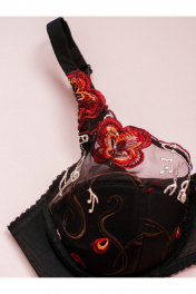 Бюстгальтер на каркасах. Чашка дублированная тонким поролоном без пуш-ап, поддерживает и приподнимает грудь. Выполнен из плотного эластичного микроволокна (сетки). Верх чашки декорирован элегантной вышивкой. Чашка с Т-образным швом, формирует и округляет грудь. U-образное расположение бретелей с регулировкой по длине. Застёжка 2*3 крючка.