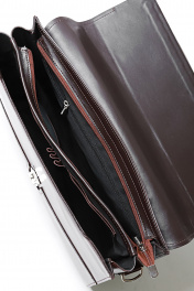 Портфель на два отделения, закрывающийся клапаном на з/защелку, одно отделение открытое, второе-закрывается на застежку-молнию, с одной короткой ручкой, с регулирующимся ручкой-ремнем, на задней стенке карман, закрывающийся на застежку-молнию, передняя ст Размеры: 400x305x110