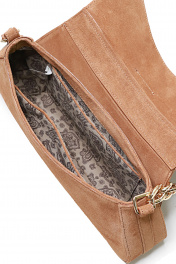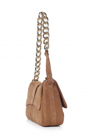 Сумка на одно отделение, закрывающееся клапаном на замок-магнитку, с комбинирующейся ручкой с цепью длиной 680+-10 мм, с двумя боковыми ручкодержателями, с накладкой на клапане. Цвет фурнитуры - золото. Размеры: