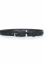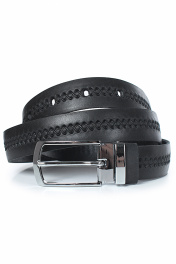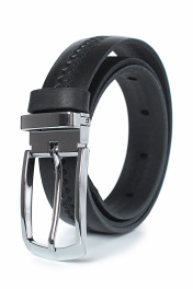 Ремень в обрезку, с обработкой изнанки, без обстрочки ремня по периметру, с металлической пряжкой со шлевкой, с тиснением ремня, с одной передвижной шлевкой. Цвет фурнитуры - никель. Размеры: 950x3x30