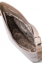 Сумка на одно отделение, закрывающееся на застежку-молнию, с несъемной регулирующейся ручкой-ремнем максимальной длины 955+-10мм, на задней стенке карман, закрывающийся на застежку-молнию. Цвет фурнитуры-никель. Размеры: 270x310x100
