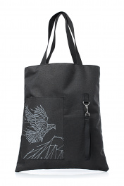 Сумка на одно отделение, с двумя ручками длиной 540+-10 мм, с открытым карманом на передней стенке, с рисунком на кармане, нанесенным методом шелкографии. Длина съемной ручки 185+-10 мм. Фурнитура - никель. Размеры: 390x445x5