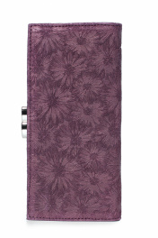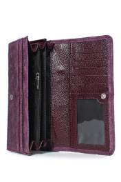Портмоне закрывается клапаном на кнопку, с карманом на задней части корпуса, закрывающимся на рамочный замок, с открытыми карманами, с краями в загибку. Размеры: 180x90x35