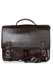 Портфель закрывается клапаном на цупферные замки, с одной короткой ручкой, с обтяжкой ручки, с ручкойремнём, на задней стенке карман, закрывающийся на застёжкумолнию, на передней стенке три кармана, закрывающиеся на застёжку-молнию, с двумя гортами и запр Размеры: 390x300x45