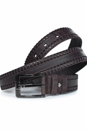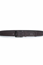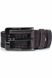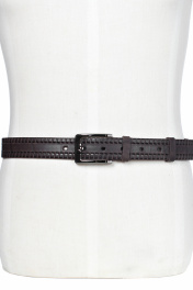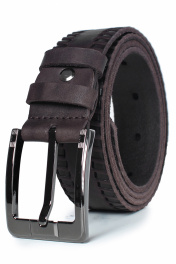 Ремень в обрезку, с обработкой изнанки, с декоративным тиснением ремня, с пряжкой и шлевкой на запряжнике, с одной передвижной шлевкой. Цвет фурнитуры - черный никель. Размеры: 1250x3x35