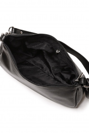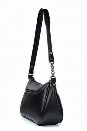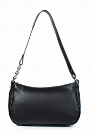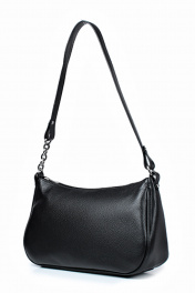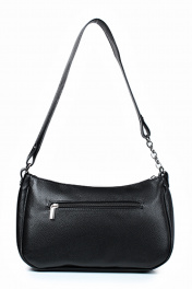 Сумка на одно отделение,закрывающееся на застежку-молнию,с одной ручкой длиной 675+-10мм,ручка частично состоит из цепи,с боковыми р/держателями на заклепках, на задней стенке карман,закрывающийся на застежку-молнию,фурнитура-никель. Размеры: 310x195x105