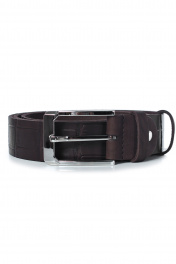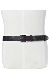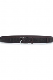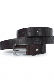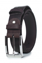 Ремень в обрезку, с обработкой изнанки, с декоративным тиснением ремня, с пряжкой и шлевкой на запряжнике, с одной передвижной шлевкой. Цвет фурнитуры - никель. Размеры: 1250x3x35